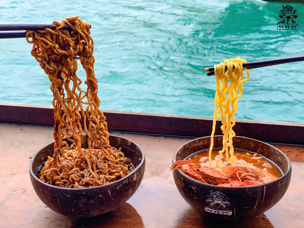 Tận hưởng bữa ăn nhẹ với mì ramen hải sản, kèm bia, nước ngọt, rượu vang không giới hạn.