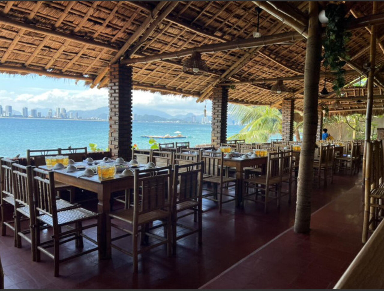 Thưởng thức bữa trưa tại nhà hàng ven biển với view nhìn ra vịnh Nha Trang thơ mộng.